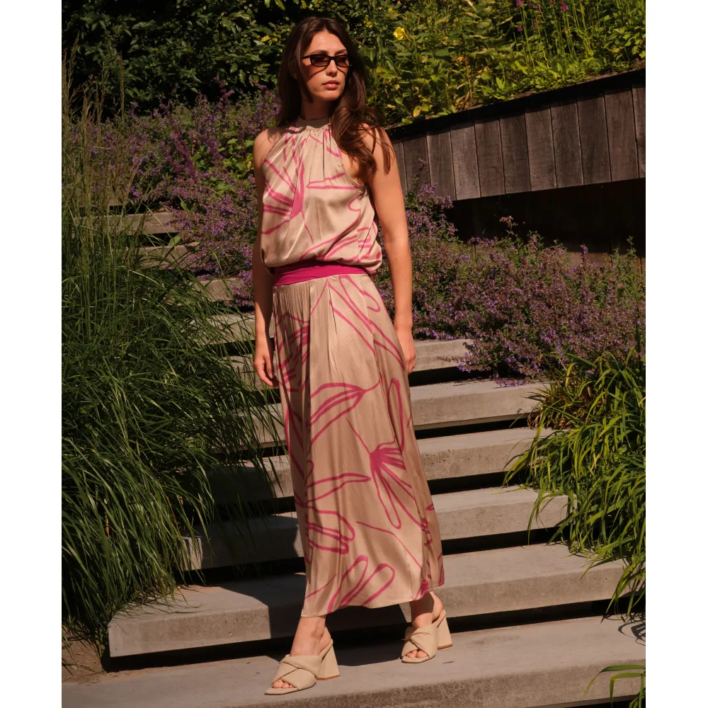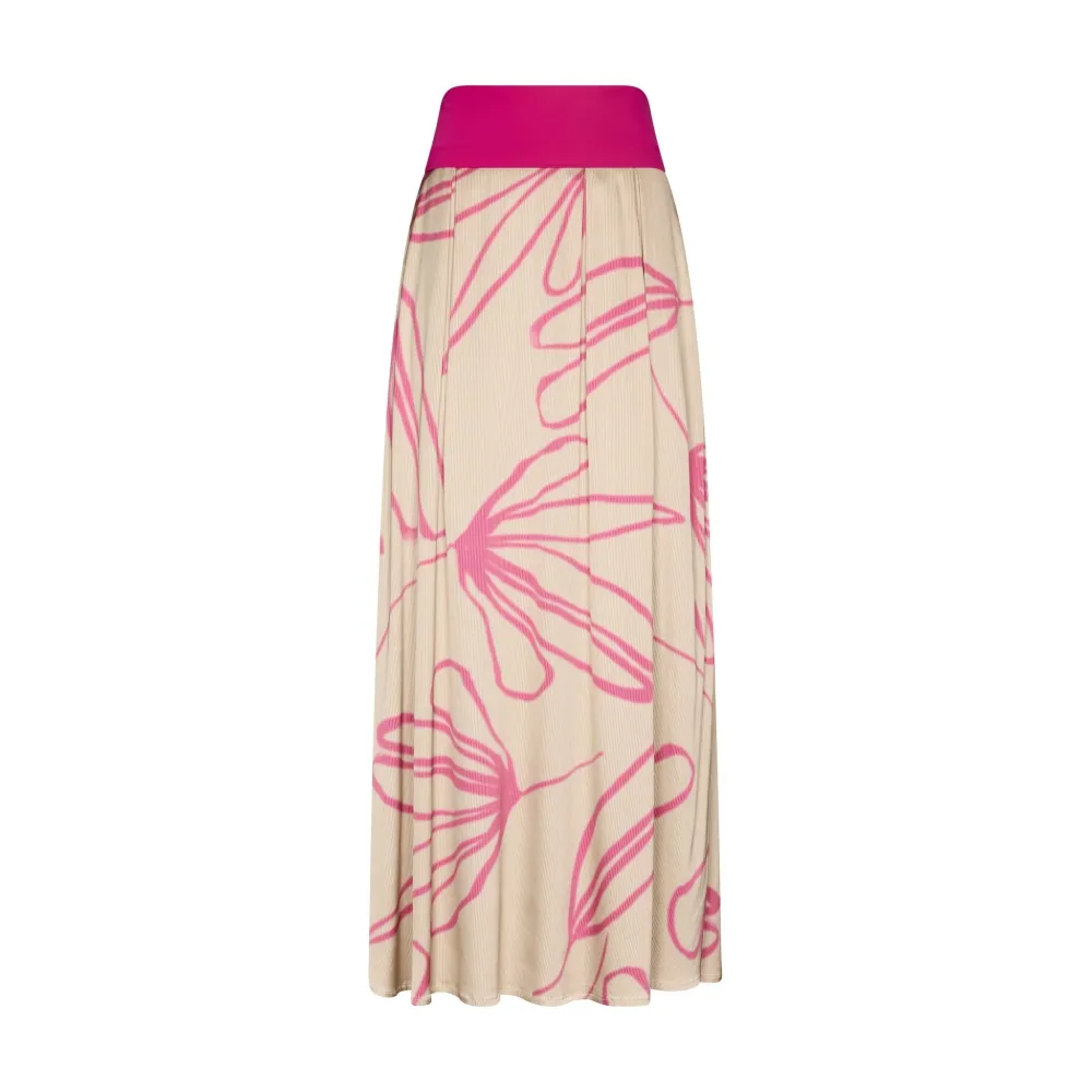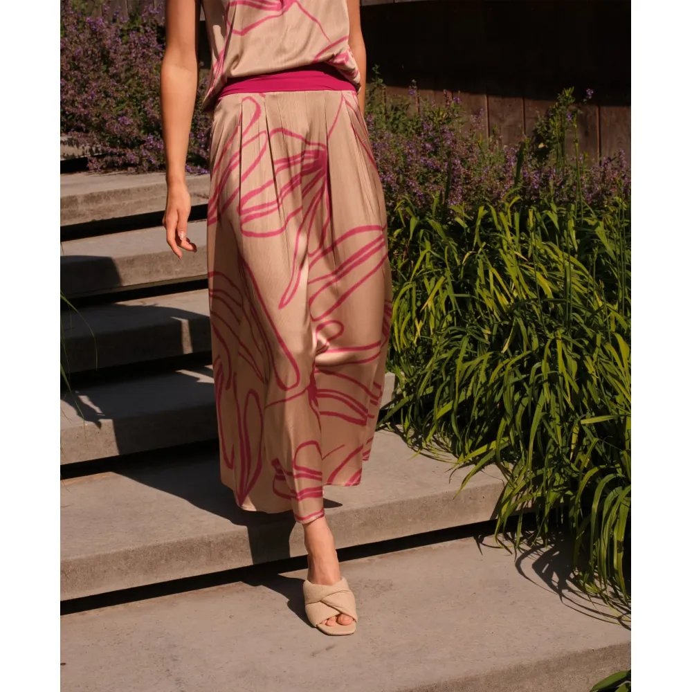 Maxi rok Kana Dessin geeft elke look een elegante, feestelijke twist. De combinatie van een comfortabele tailleband in travel jersey en een soepel vallend rokgedeelte met subtiele satijnglans en comfortabele steekzakken zorgt voor een speels contrast. De rok beweegt licht met je mee en voelt heerlijk luchtig aan. Een echte blikvanger die moeiteloos comfort en stijl samenbrengt – perfect voor zowel casual als meer geklede momenten.
