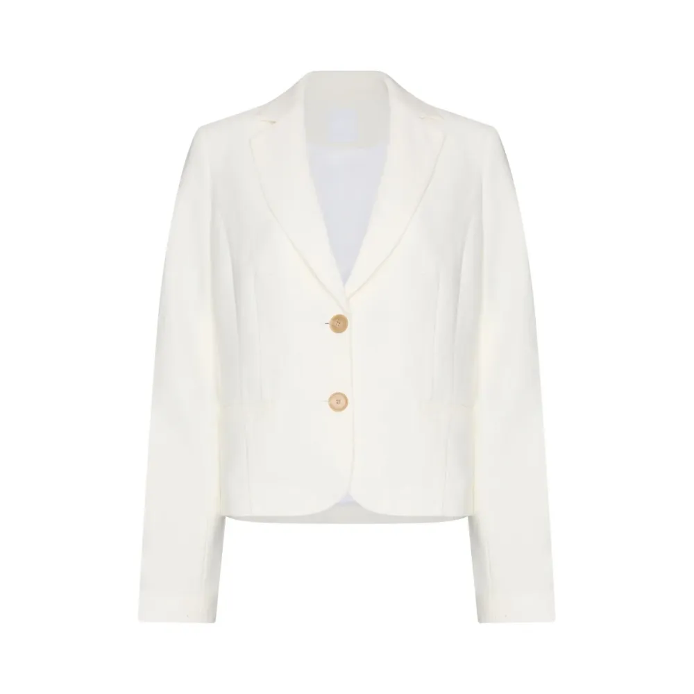 De verfijnde viscose-linnen blend geeft het jasje een luchtige feel met een subtiel levendige structuur. Dankzij de zachte witte tint en de soepel vallende, licht getailleerde pasvorm oogt Moann moeiteloos chic. Ideaal om je look een stijlvolle laag te geven – van zonnige dagen tot zwoele zomeravonden.