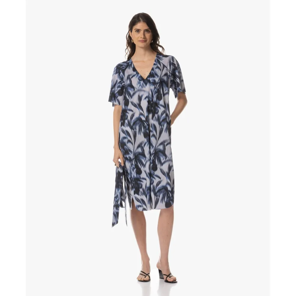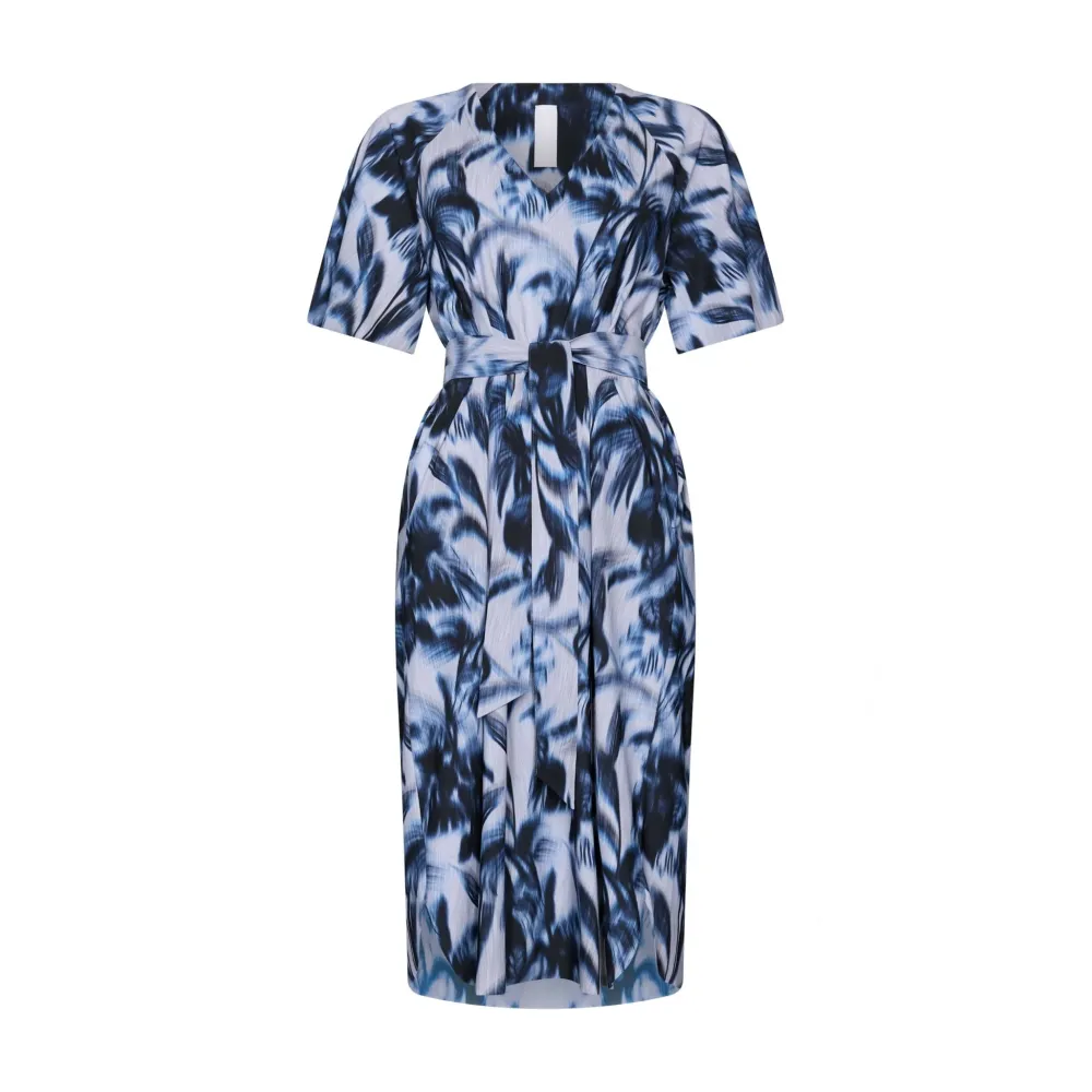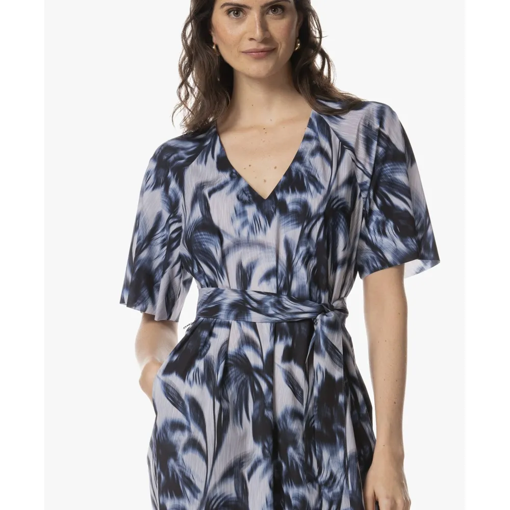 In de jurk 'Modoko' komt de Summer Shadow print prachtig tot zijn recht. De lichte travel kwaliteit voelt soepel en luchtig aan, perfect voor zonnige dagen.