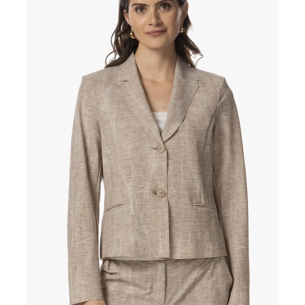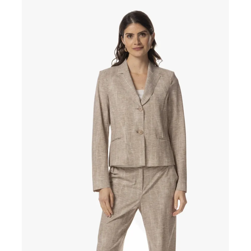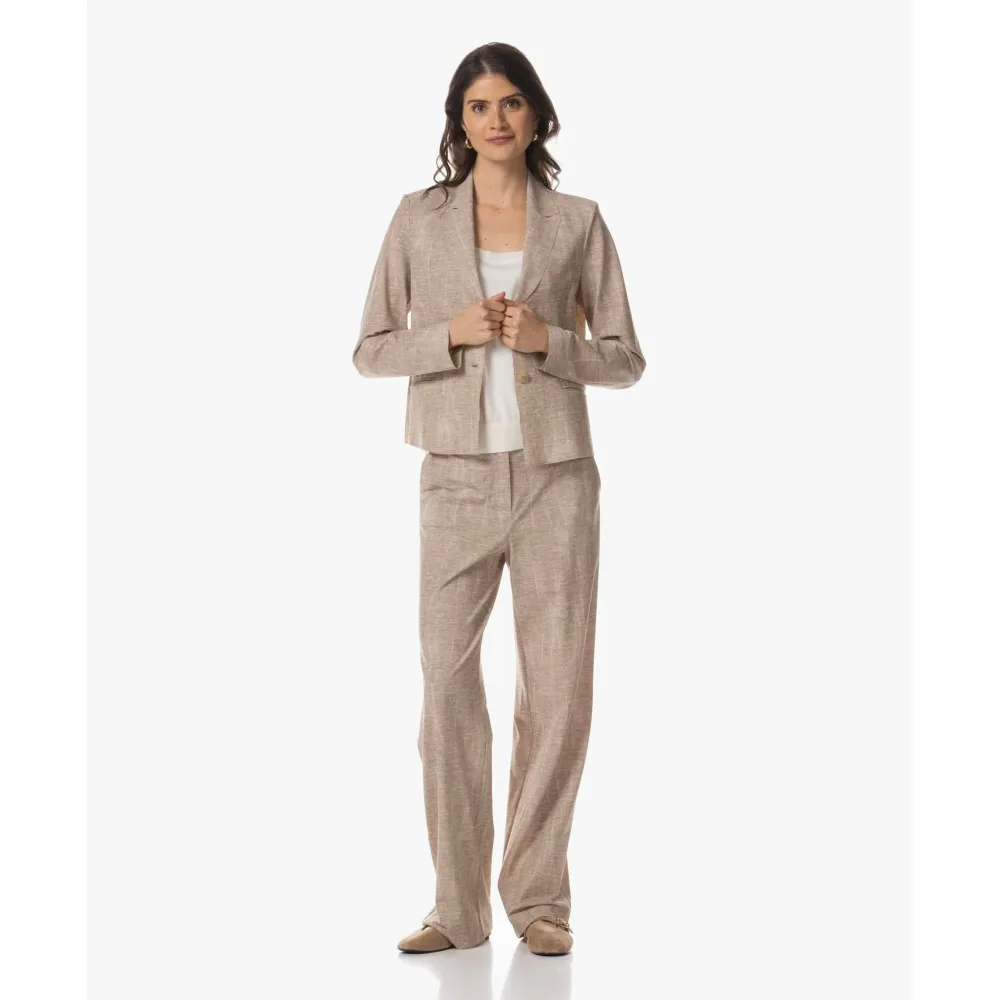 De Shoji Blazer geeft een eigentijdse twist aan je look. Het licht cropped model en de subtiele print zorgen voor een modern, vrouwelijk silhouet. De comfortabele travel jersey valt soepel en creëert een mooie, gestroomlijnde uitstraling. Strakke paspelzakken en de korte lengte geven het jasje een minimalistische en frisse feel. Een veelzijdig item dat elke outfit net dat beetje extra geeft. Combineer het moeiteloos met de Wakaba Top en de Kana Rok of draag het als complete set met de bijpassende Taro pantalon.