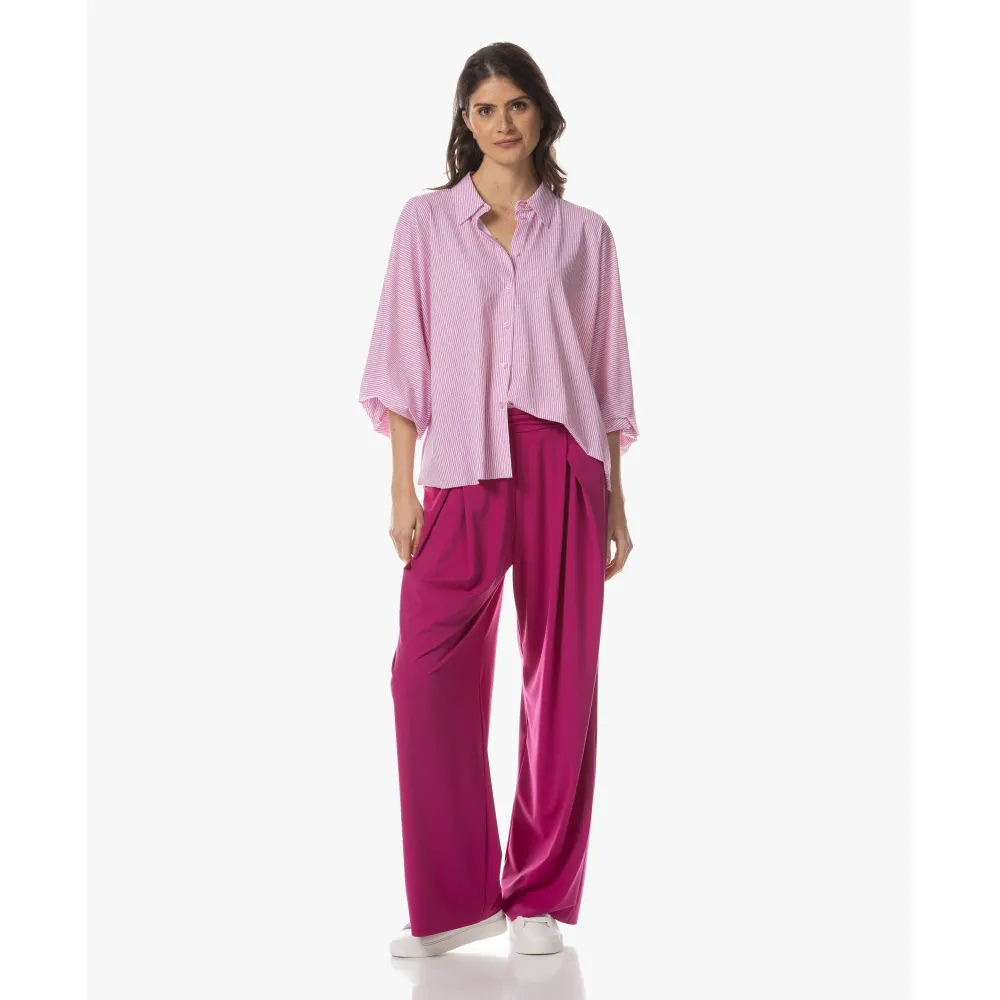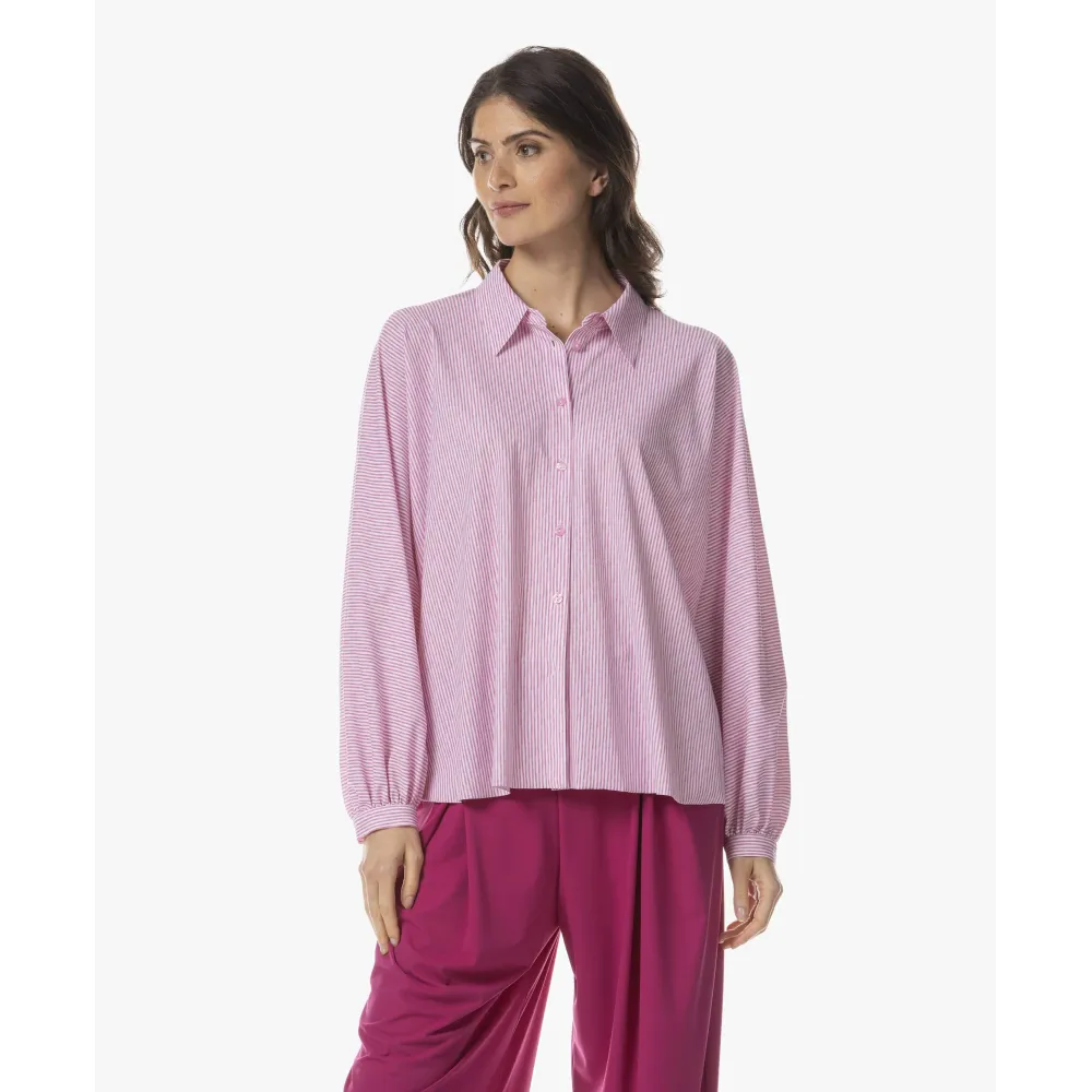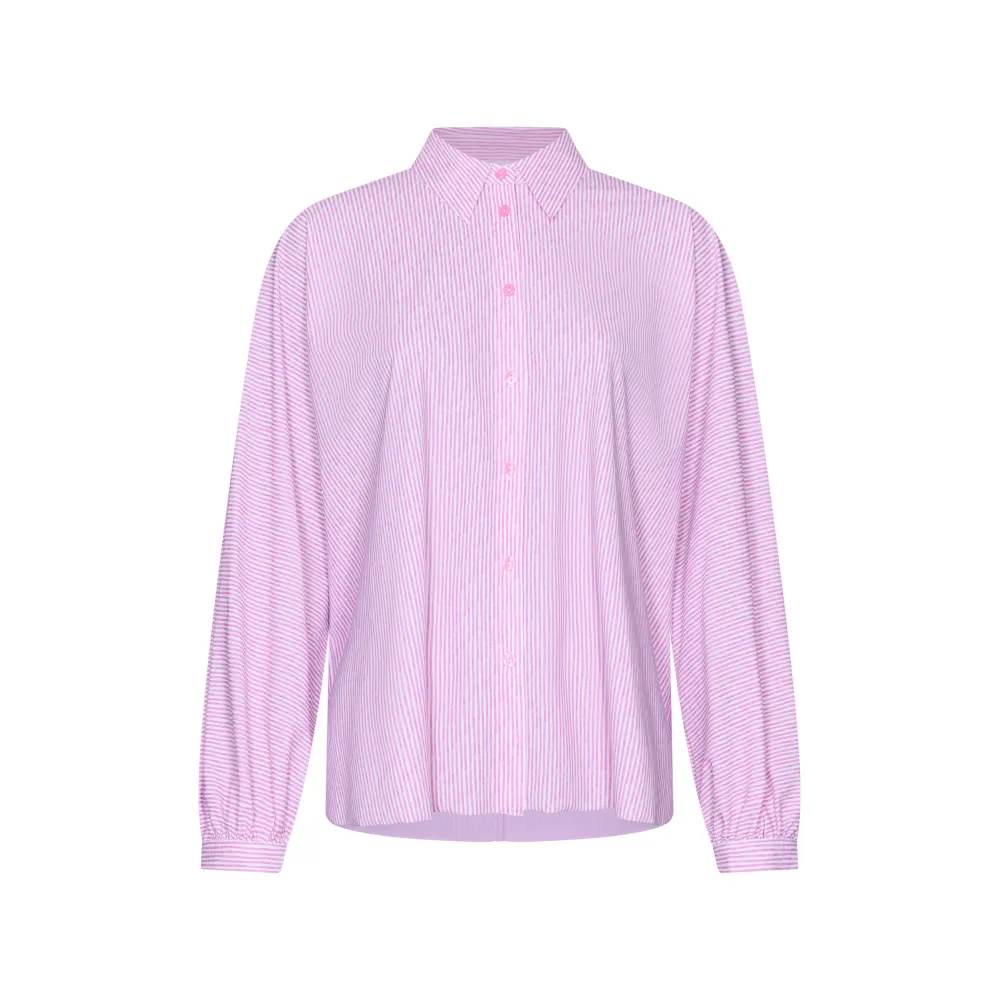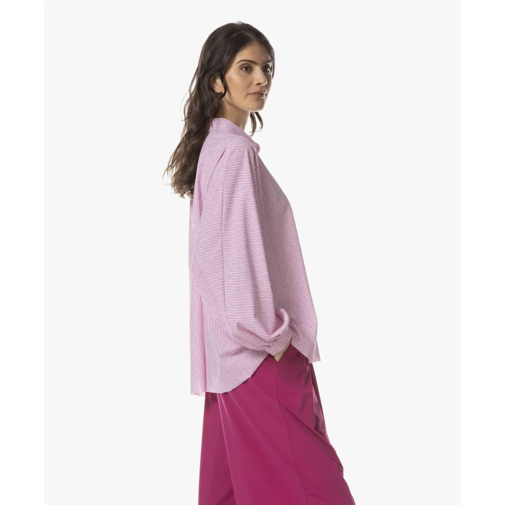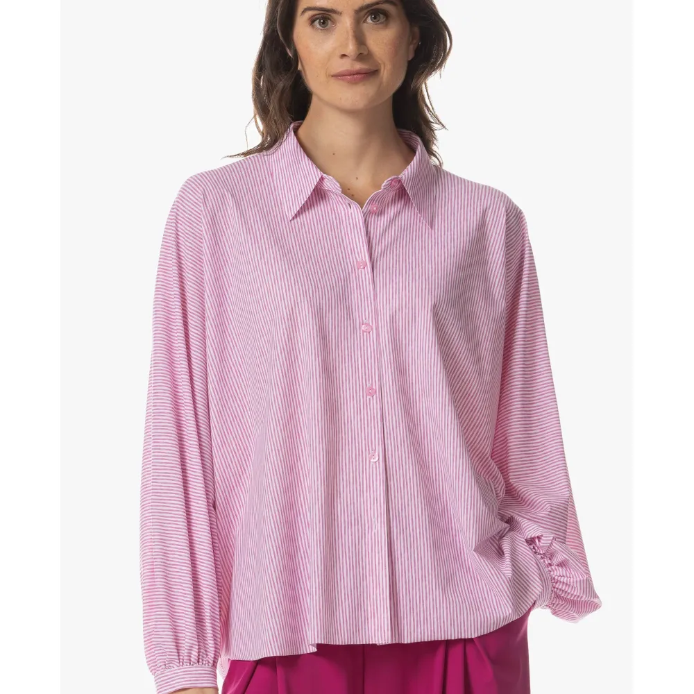 De Iwai Dessin Blouse brengt moeiteloos modern design en vrouwelijke elegantie samen. De subtiele pofmouwen en de klassieke puntkraag geven de blouse een verfijnde, eigentijdse uitstraling. Dankzij de lichte travel jersey valt het model soepel en luchtig langs het lichaam. De frisse streepprint komt prachtig tot leven op de stof en maakt dit item tot een stijlvolle allrounder – perfect om elke look een elegante twist te geven. prachtig te combineren met de Rieka Pantalon of nonchalant op je favoriete zomerjeans.